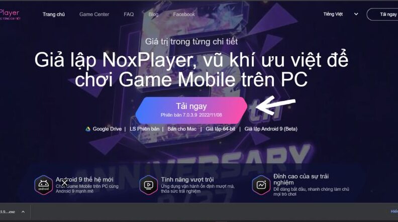 Đầu tiên, các anh em hãy truy cập ngay vào trang chủ https://vn.bignox.com và nhấn Tải ngay để cài đặt ứng dụng NoxPlayer.